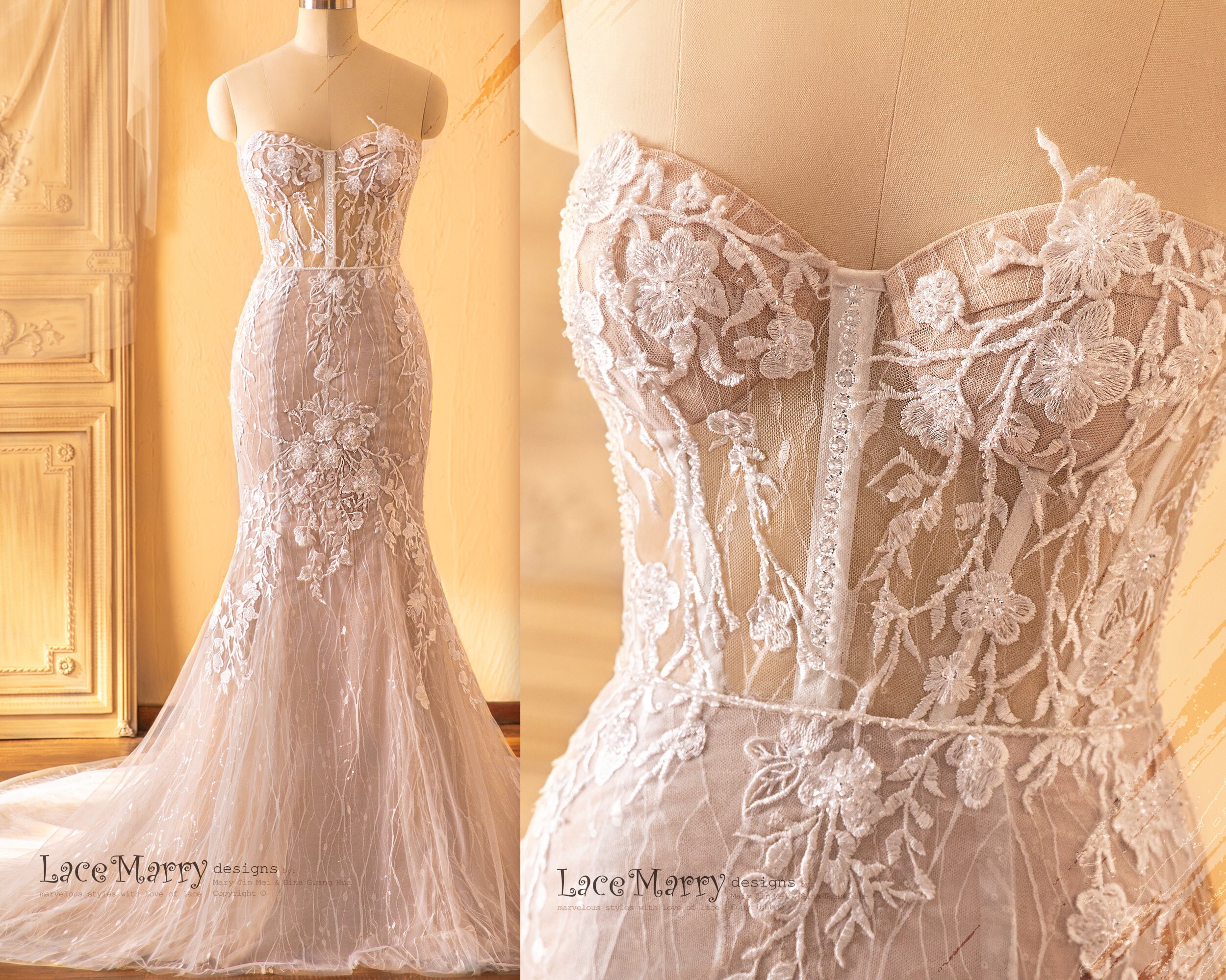 Sparkly Lace Wedding Dress With Strapless Bustier Neckline A Etsy